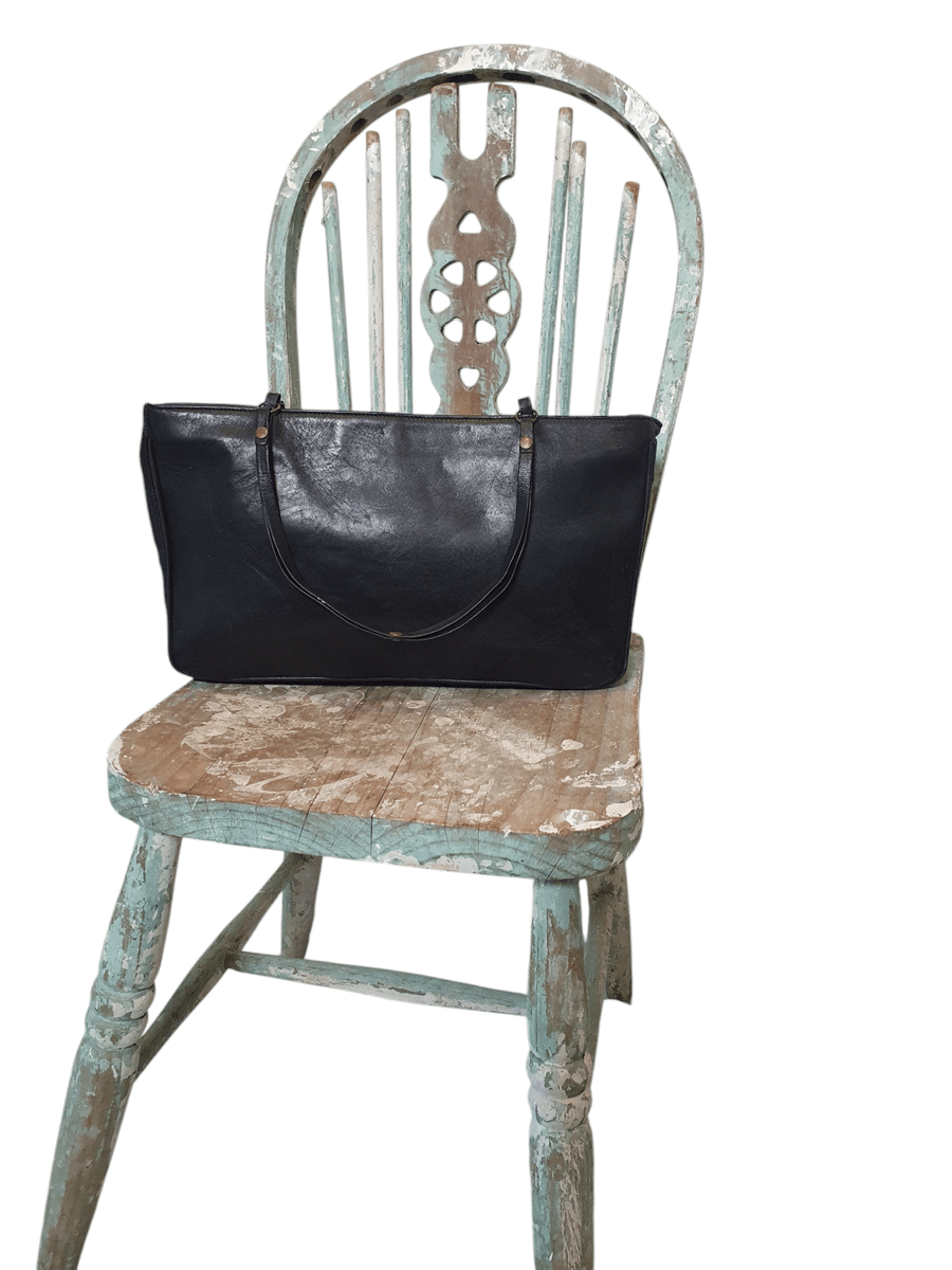 This black leather Briarwood bag is a sturdy, functional and retro studded delight. Great capacity, combined with a top handle and black lining.