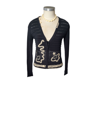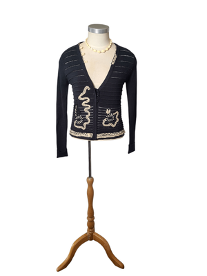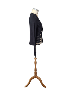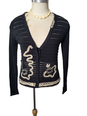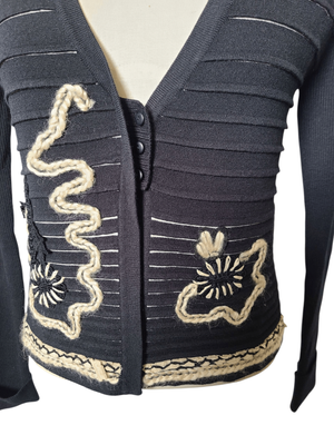 Wonderful black Didi cardigan with cream motif and embossed filagree.