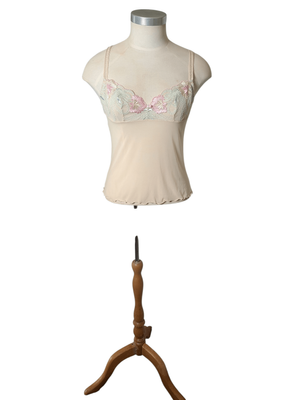 Sweet Bendon camisole. Feminine pastels combine effortlessly. Pink and a creamy sage green, adjustable spaghetti straps.