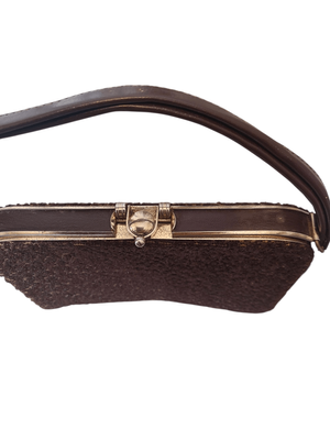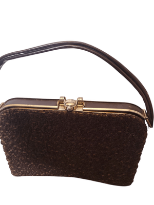 Gorgeous donkey brown fabric covered vintage purse. Great clasp, clip, shut and go.