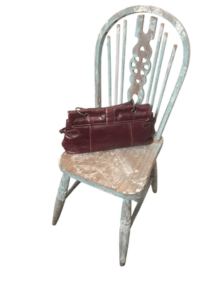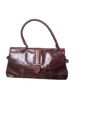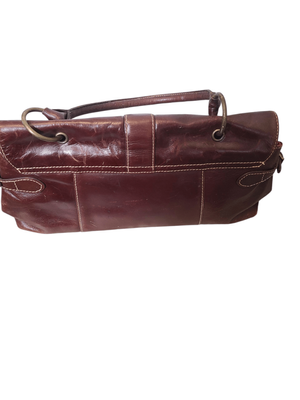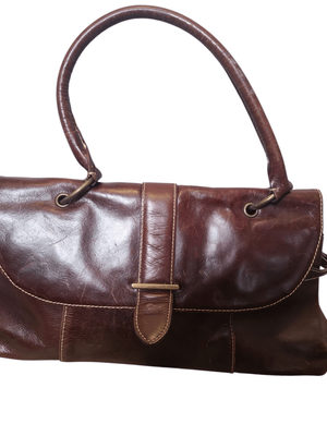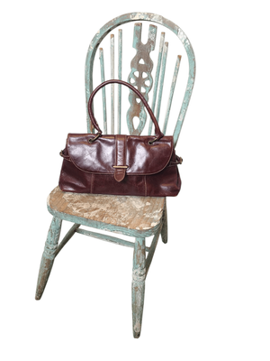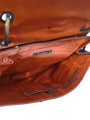 A superb dark brown keather bag, with top handle. Fabulous orange lining.