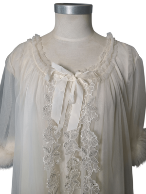 Vintage Avian Peignoir Set, Floral lace tulle robe and Nightgown set size medium