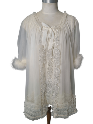 A beautiful peignoir set, baby doll nightie with matching shortie robe.
