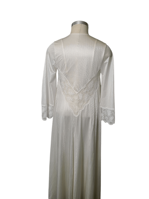 The sleeves are voluminous, puffy and devine but the real triumph is the gorgeous lace V, matching on the reverse side of both nightie and robe.