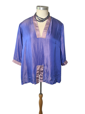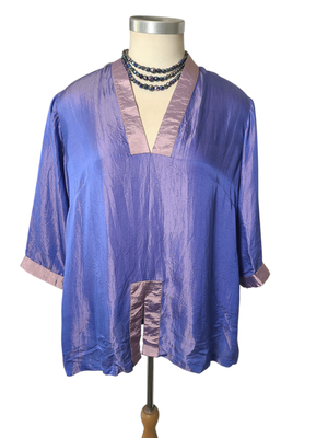 A fabulous silken lavendar top with pink trim. NZ size 14.