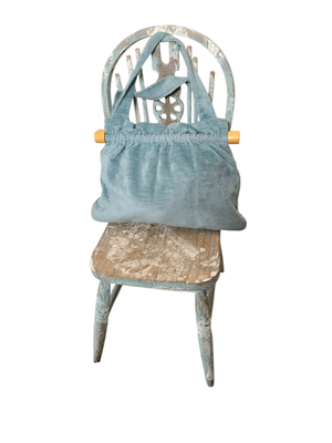 Faded blue with muted tones and a pop of teal. No one else will have one!