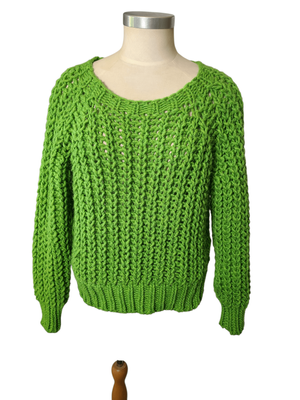 Forest green makes this a triumph, perfect weekend wear, with jeans, plaid skirt, corduroy.