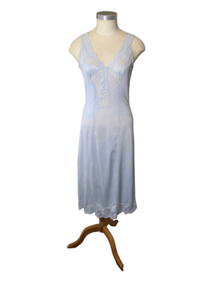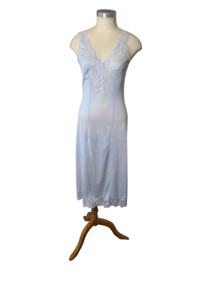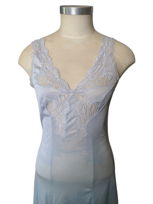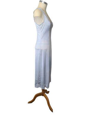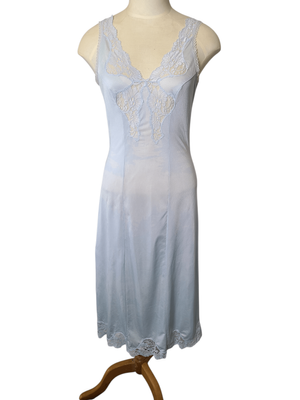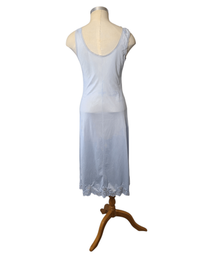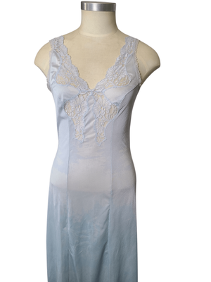Disclaimer: This blue vintage petticoat as beautiful as it is has substantial fading and loss of dye pigmentation. Dye has run, leaving an almost ombre effect.
