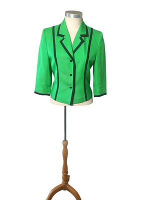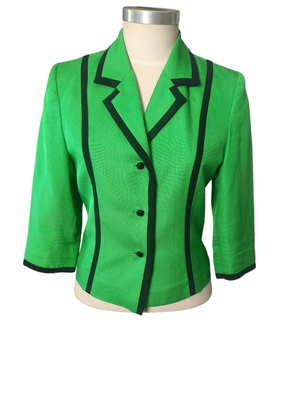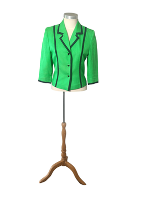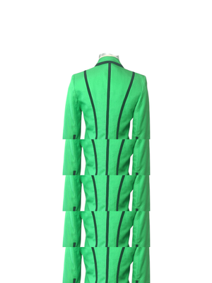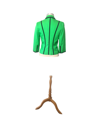 Super cropped jacket. Smart tailoring with green and black proving very impactful.