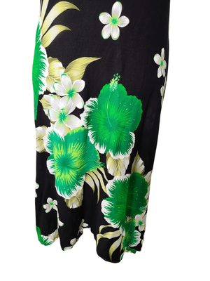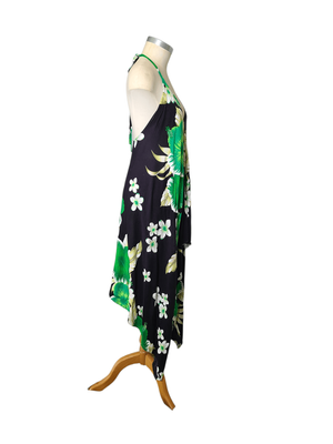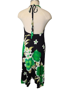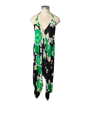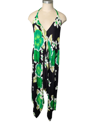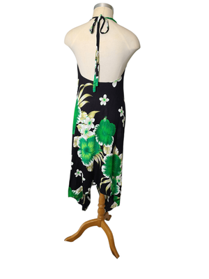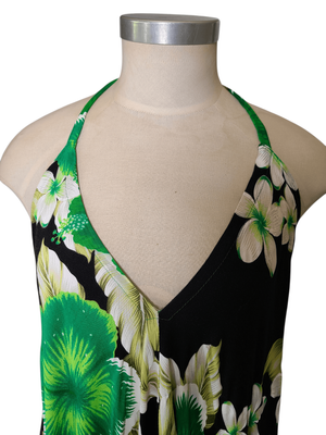 Turn heads this summer in this stunning boho-inspired halter neck dress. Featuring a bold oversized floral print in black, green and white, this piece brings effortless Hawaiian vibes with a flattering feminine silhouette.