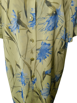 Featuring a classic shirt-dress silhouette with a flattering fit, this beauty combines crisp tailoring with a playful citrus-inspired colour palette. The soft lemon tones paired with delicate blue detailing give it that true vintage charm we love — elegant yet easy to wear.