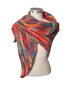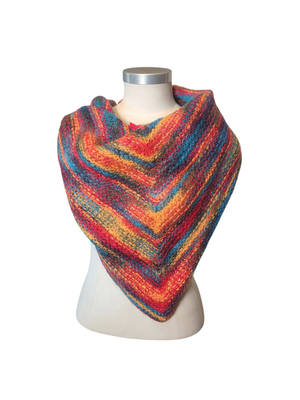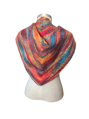 Wrap yourself in warmth and colour with this beautifully hand-knitted triangular shawl, crafted from 100% pure wool. Each stitch reflects the care and artistry of traditional handcraft, making this piece truly one of a kind.