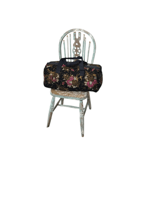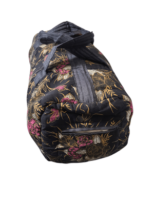 Add a touch of global vintage charm to your outfit with this batik-inspired Bali duffel bag. Set against a rich black background with traditional-style patterning, this piece has that unmistakable handcrafted, well-travelled retro feel.