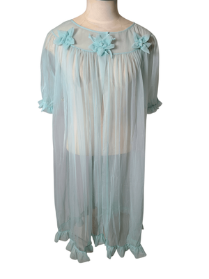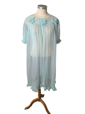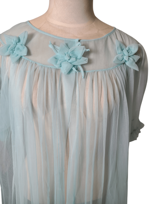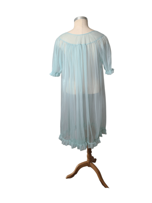 Turquoise Chiffon Housecoat / Robe (NZ size 12) 1960s