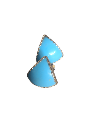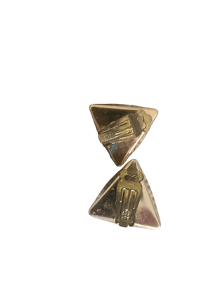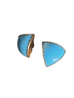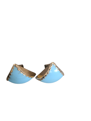 These Y2K-era clip-on earrings feature a smooth, pale blue centre framed by a gold-tone scalloped edge. Lightweight and easy to wear, they bring just the right amount of colour without overpowering an outfit.