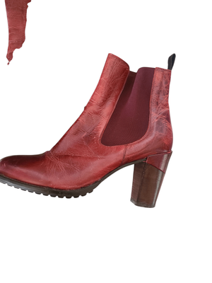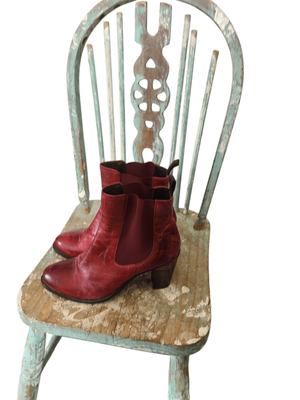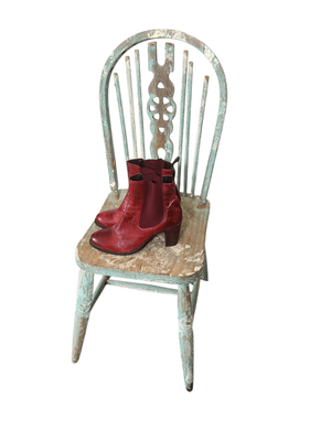 A striking pair of European-crafted ankle boots in the most beautiful deep oxblood red — rich, warm, and full of character.