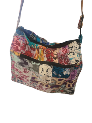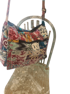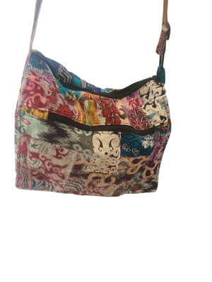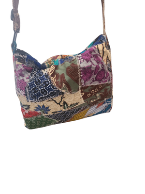 This handcrafted patchwork shoulder bag is a wearable piece of art — stitched together from an eclectic mix of fabrics, each telling its own story.