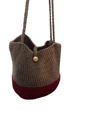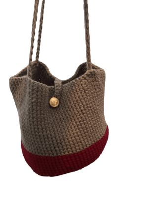Chunky hand-crocheted texture with braided shoulder straps and a sweet vintage-style gold button closure. Soft structure with just enough shape to sit beautifully when worn or styled.